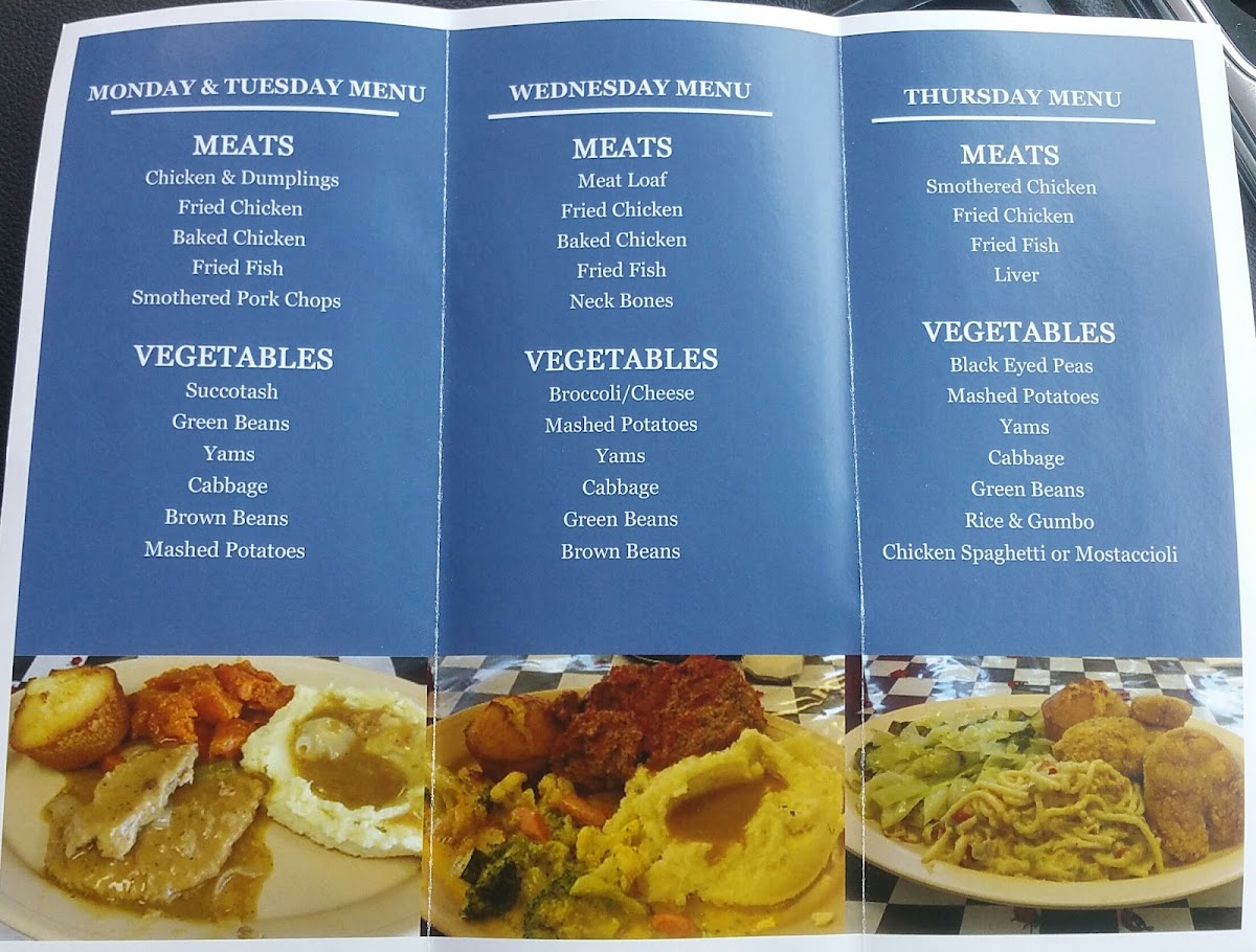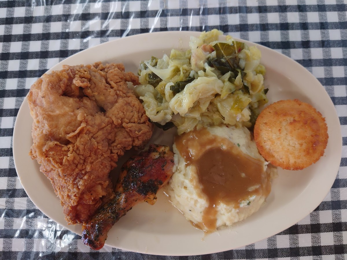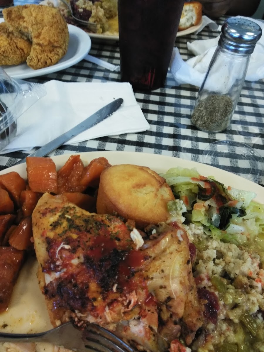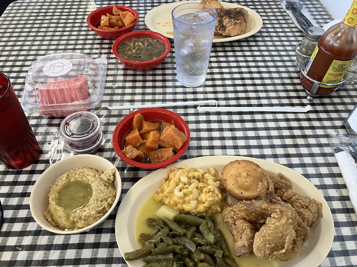 Food delicious and seasoned well from the yams, dressing and baked chicken Will return for the gumbo. Staff are friendly Great home style atmosphere